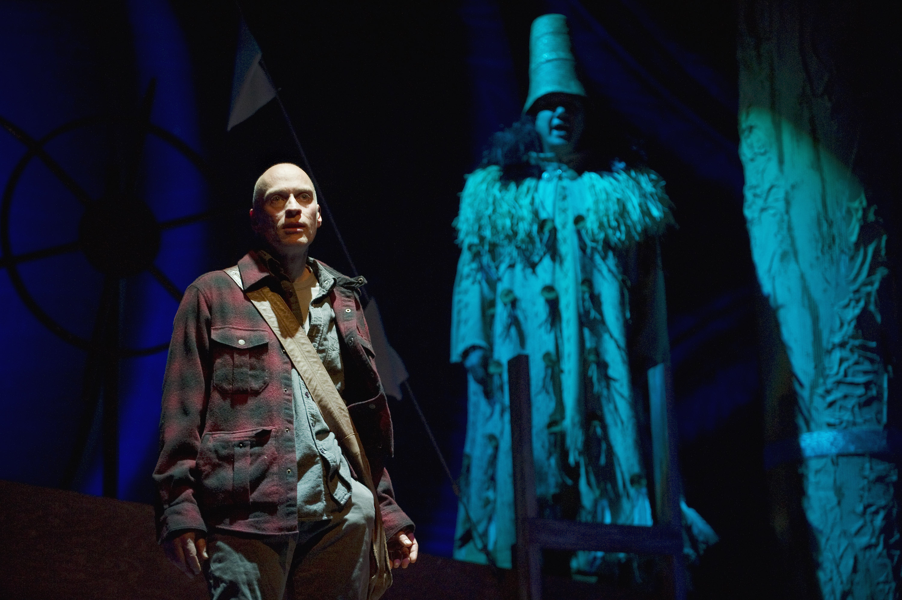 Mann, of Spirit of the West fame, is in fine form, vocally and dramatically.  Tom Jackson (North of 60) deftly plays the Watchman, a mystical guide intent on protecting the totem poles from Wilson’s interference.  The fallback into over-used stereotypes, which at times threatened to derail the production, is carefully tempered by the beautiful imagery.